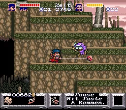 Wie der eine oder andere vielleicht weiß, war es immer mein großer Traum, die komplette Ganbare Goemon-Reihe ins Deutsche zu übersetzen (auch wenn mir bewusst ist, dass es sich hier um ein absolutes Nischenprodukt handelt). Von daher war es für mich irgendwie klar, dass auch Teil 1, der hierzulande als The Mystical Ninja als einziges Spiel der Serie für das SNES erschien, eine eigene Übersetzung erhalten soll. Das Spiel erschien in Japan unter dem Namen Ganbare Goemon: Yukihime Kyuushutsu Emaki, was im Deutschen soviel wie Die Rettung Prinzessin Yukis bedeutet. In der damaligen offiziellen Version hatte es mich immer gestört, dass Goemon und Ebisumaru als Kid Ying und Dr. Yang aufgetreten sind, in den Jahren danach aber als Goemon, Ebisumaru & Co. bezeichnet wurden. Um dem ganzen gerecht zu werden, wurden die nunmehr bekannten Namen auch im ersten Teil verwendet. Ich bin ebenfalls vom Titel "The Mystical Ninja" abgekommen, da die "komplette Serie" voll und ganz an "Ganbare Goemon" angelehnt ist. Ich könnte mir vorstellen, dass nicht alle mit dieser Entscheidung einverstanden sind, aber ich bitte, meine Eigenmächtigkeit hier zu entschuldigen.
