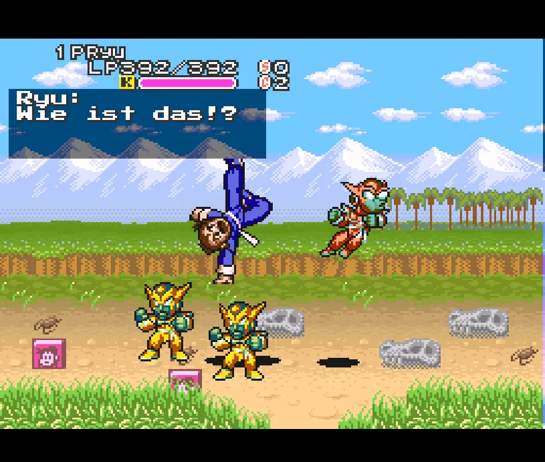 Wer die Spielemechanik aus den beiden Vorgängern kennt, wird hier einen leichten Einstieg finden. Im Action RPG Modus prügelt ihr euch durch Horden von Gegnern, wobei es auf euer Können und eure Reflexe ankommt, denn die Gegner sind nicht gerade zimperlich. Im klassischen rundenbasierten RPG läuft es hingegen deutlich entspannter und ohne Zeitdruck. Wenn ihr einen von beiden Modi durchgespielt habt, erhaltet ihr ein Passwort, das euch anspornt auch den anderen Modus noch zu spielen. Die Story ist hierbei leicht abgwandelt und man trifft auf andere Gegner und Leute. Außerdem erwartet euch auch hier ein VS Modus bei dem ihr euch gegenseitig die Fäuste um die Ohren haut, egal ob als Protagonisten oder als einer der Bosse aus dem Spiel.