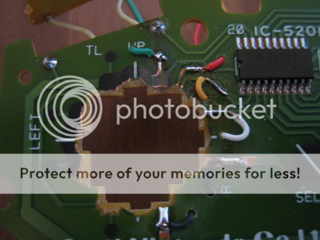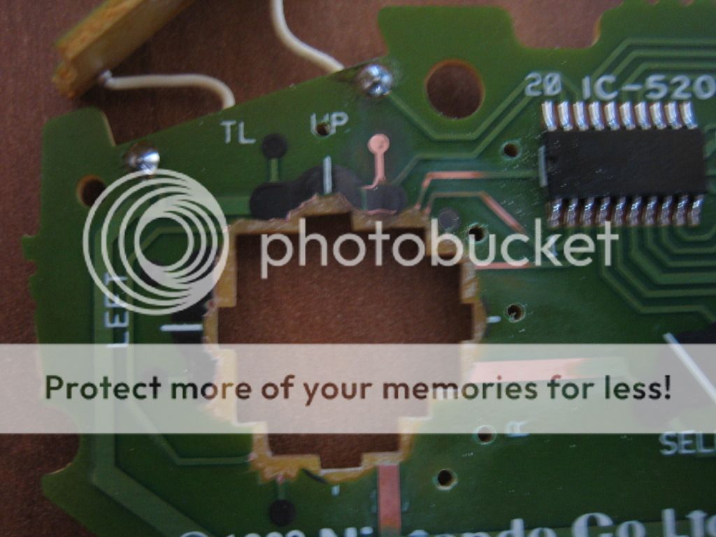 Die äußere Leiterbahn muss nun oben mit einem Skalpell oder scharfen Gegenstand herausgeschabt werden damit der Kontakt zischen Pin links und rechts unterbrochen wird, ihr könnt ruhig großzügig wegschaben da der Kontaktschluss sich in der unteren hälfte abspielt. ( ihr könnt das mit einem Multimeter prüfen wenn Pin links und rechts kein Kontakt mehr zueinander haben habt ihrs geschafft)