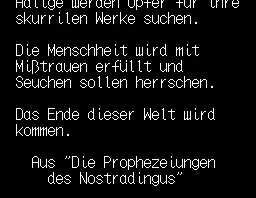 Ich habe gute Neuigkeiten, denn ich habe das Spiel einmal komplett von Anfang bis Ende durchgespielt. Und erfreulicherweise hat es sich auch bestätigt, dass es wirklich komplett spielbar ist - einschließlich dem Abspann! Auf dem Weg zum Ende gab es keinerlei Bugs mehr. Die letzten Schreibfehler habe ich hoffentlich ausgemerzt. Ich muss eingestehen, es gab schon lange kein Spiel mehr, das mir so viel Spaß gemacht hat. Ich hoffe, dass viele Leute das gleiche Gefühl dabei bekommen. Zu nächster Woche versuche ich, den Deutsch-Patch zu veröffentlichen